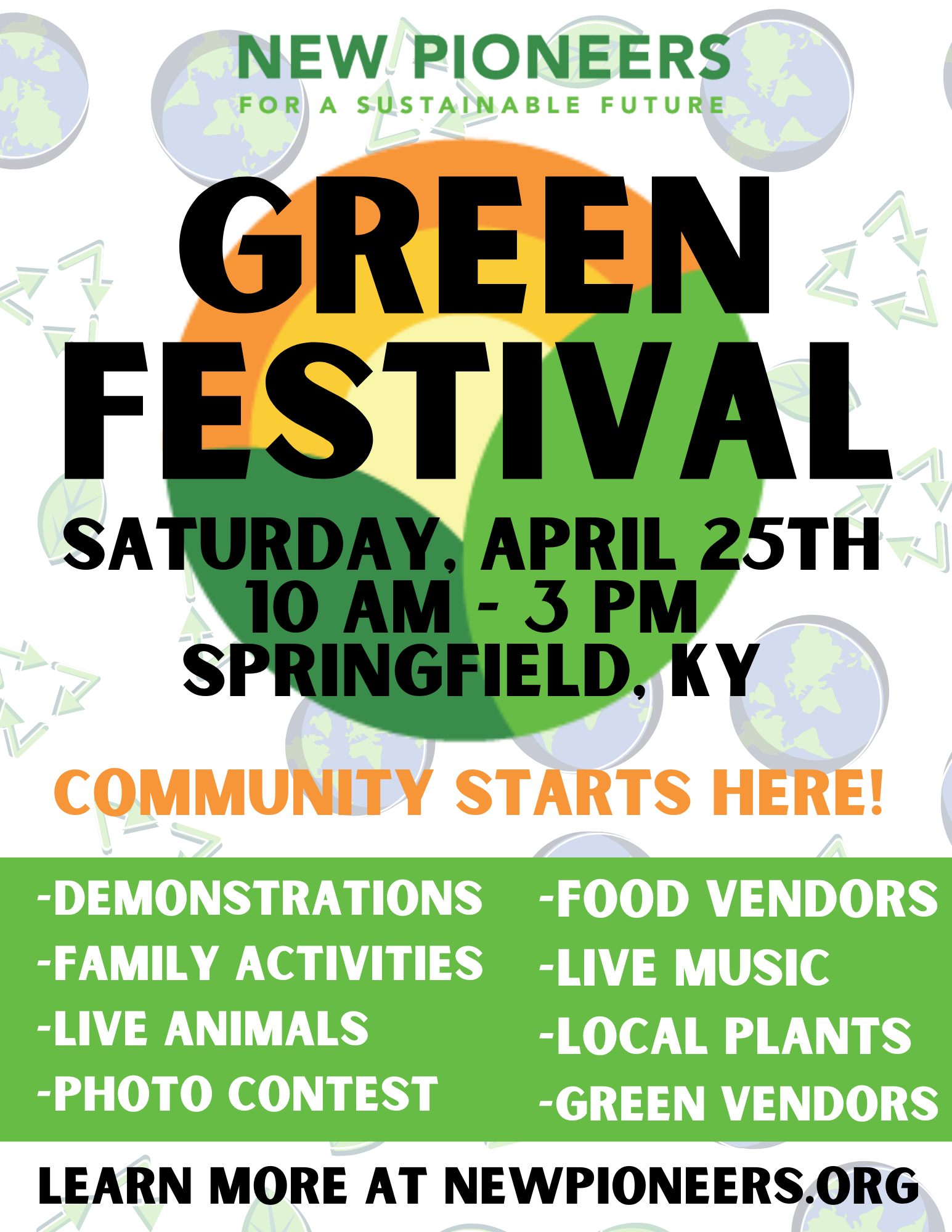 New Pioneers for a Sustainable Future is eager to present our 17th annual Green Festival on Saturday, April 25th, from 10 am to 3 pm, in downtown Springfield!