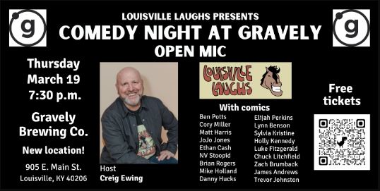 Join Louisville Laughs for our monthly comedy open mic at Gravely Brewing in Nulu.