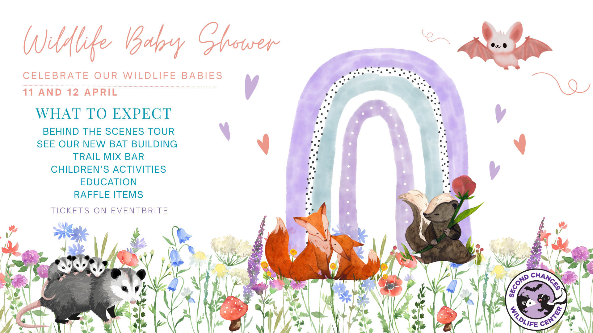 Behind-The-Scenes tour of wildlife rescue center, Second Chances Wildlife Center. See wildlife babies, operations, and enjoy some treats. Few kids’ activities and education. Annual fundraiser.