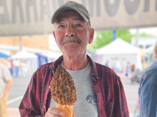 Bert Smith holds champion morel during the 2024 Mountain Mushroom festival. Photo: Mary Reed