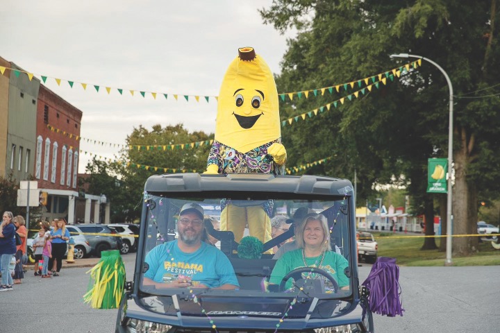A signature attraction is the world’s largest banana pudding, displayed during the parade and later served. More than 40 cases of bananas and 20 cases of pudding go into the dessert, Etherton says.