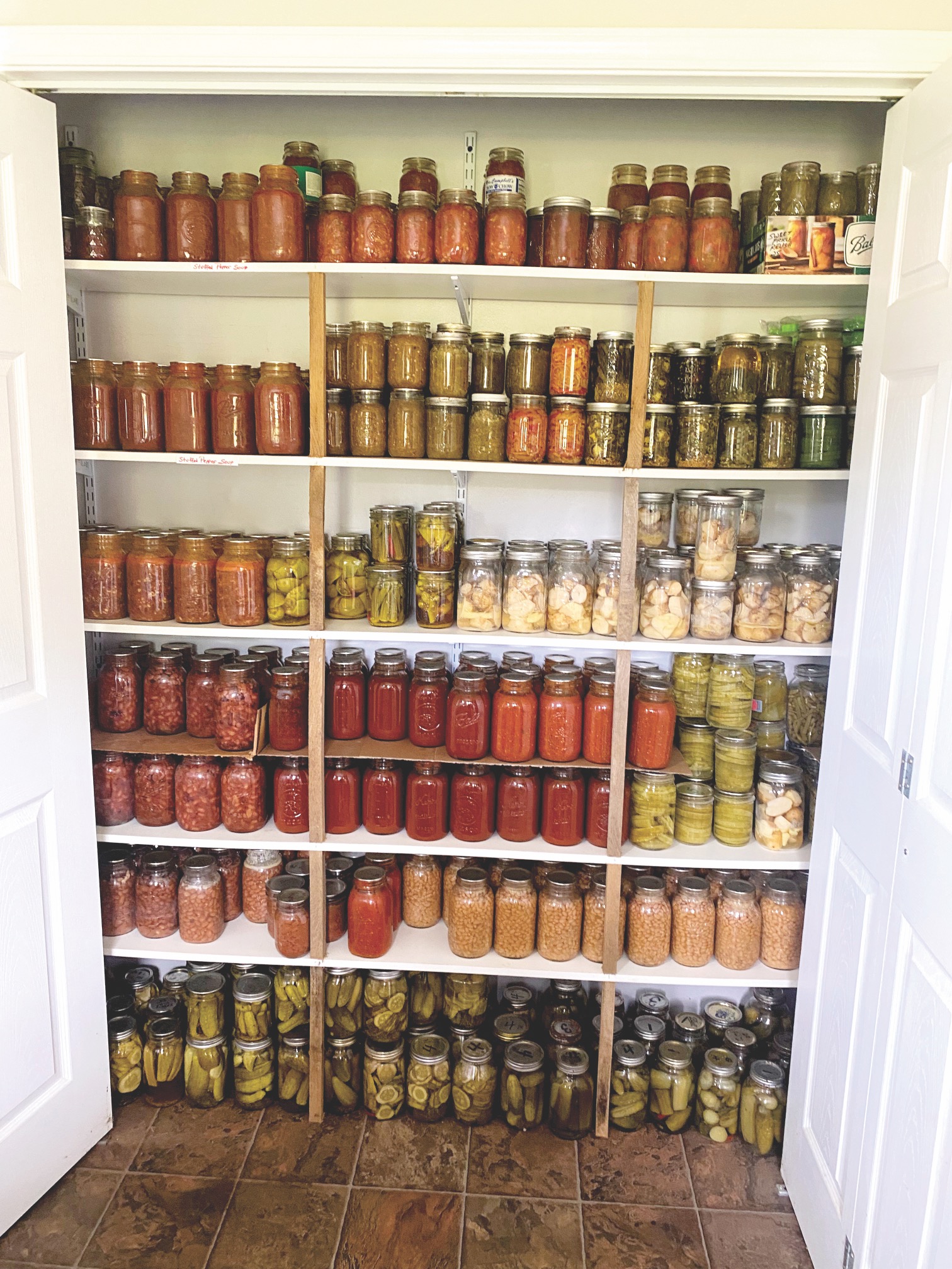 The Metcalfes have several pantries dedicated to their canned garden produce. Photo: Chuck Metcalfe