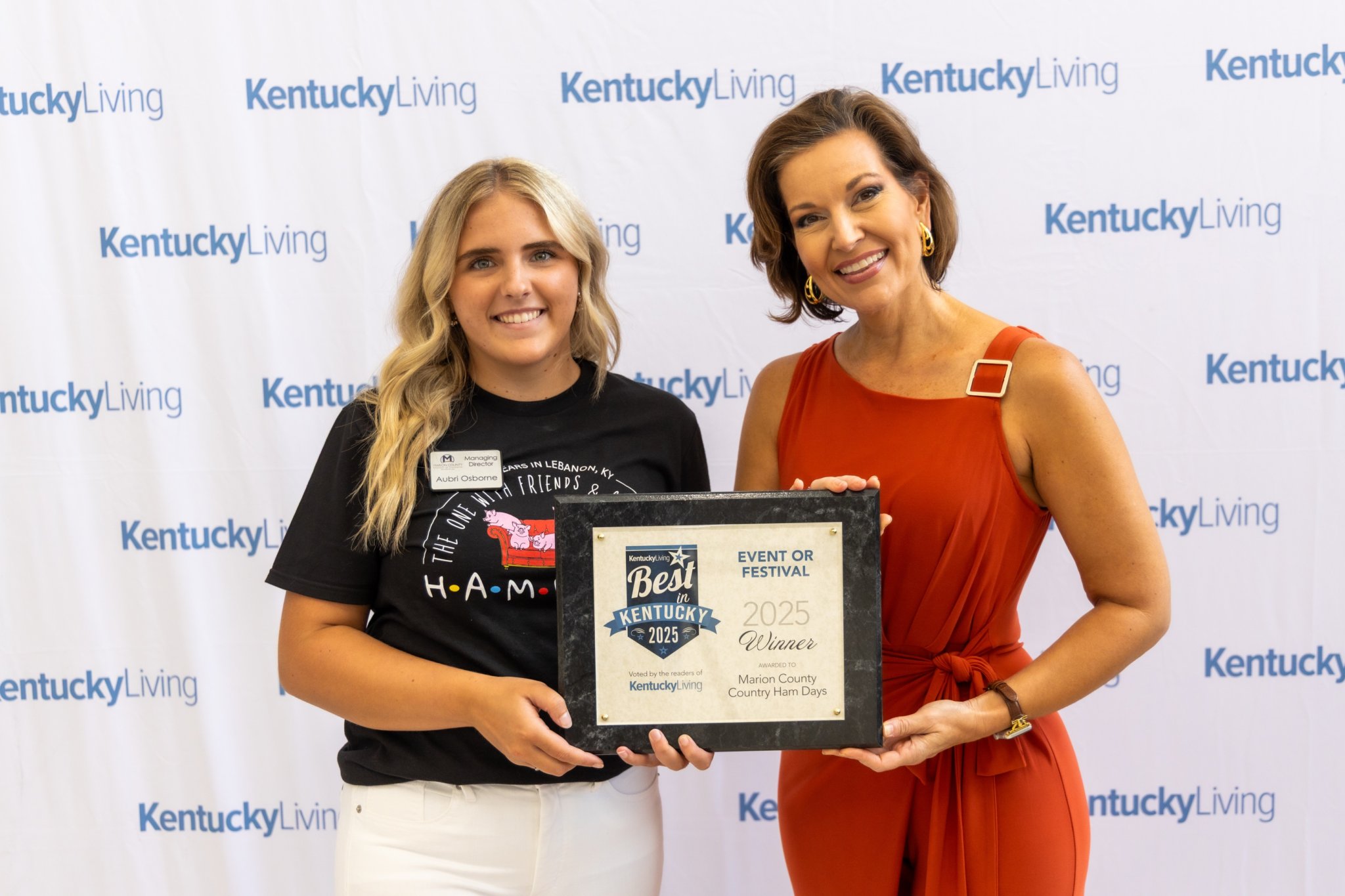 Aubri Osbourne accepts Marion County Ham Days’ award for Best Event or Festival at the 2025 Kentucky State Fair.