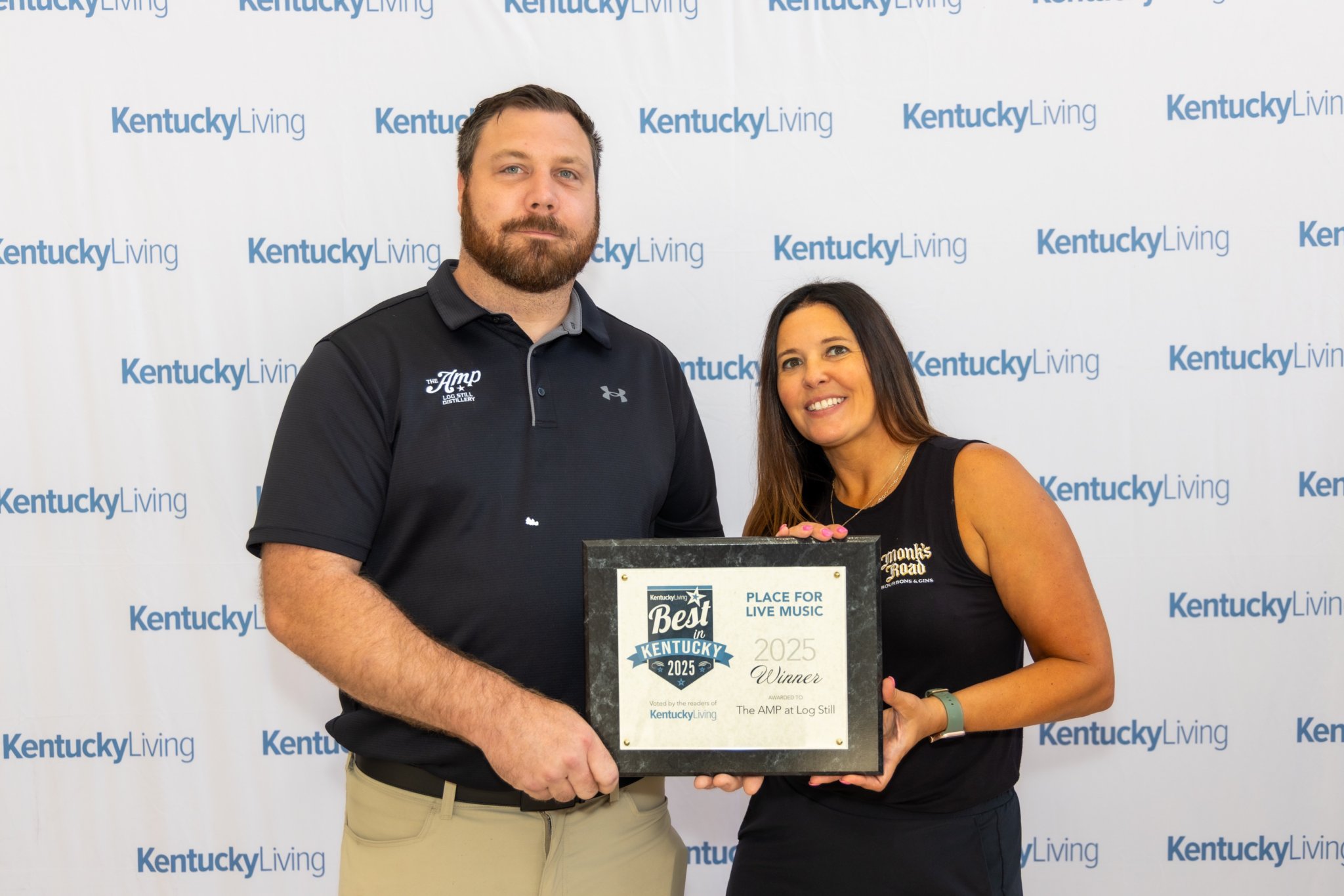 Brandon Hurn and Denise Ingle accept the award for Best Place for Live Music for the Amp at Logstill.