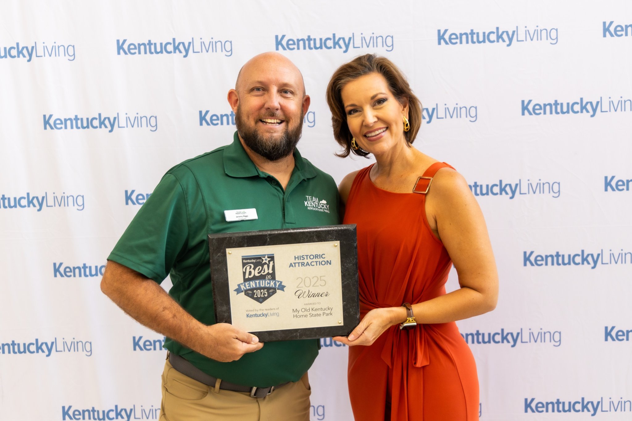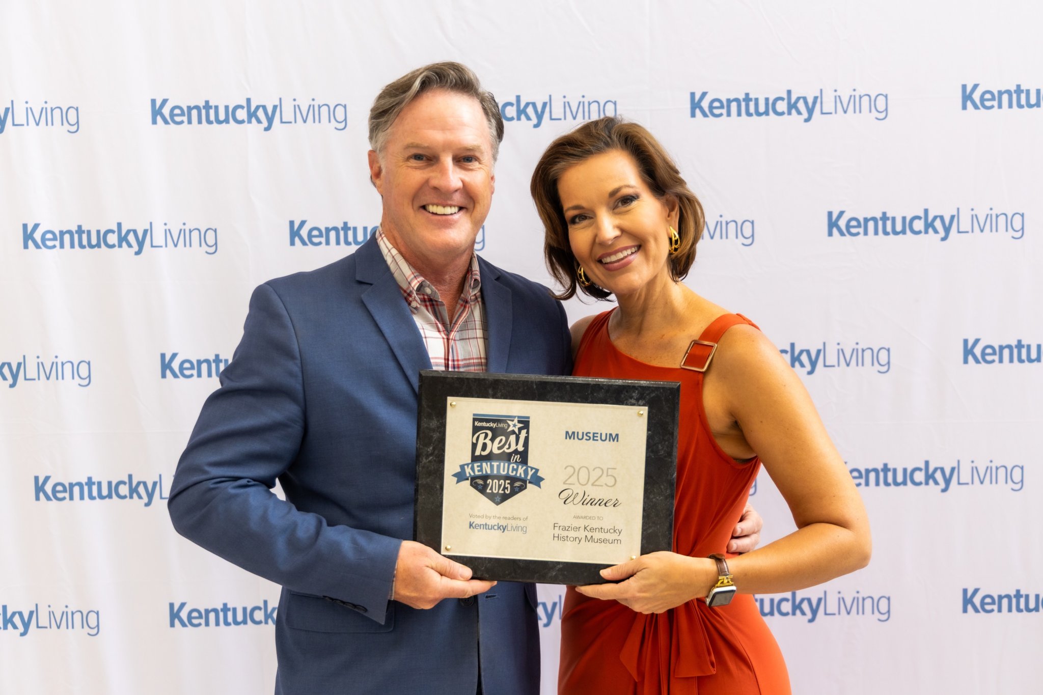 Frazier History Museum’s Andy Treinen accepts the award for Best Museum from Heather French Henry at the 2025 Kentucky State Fair.