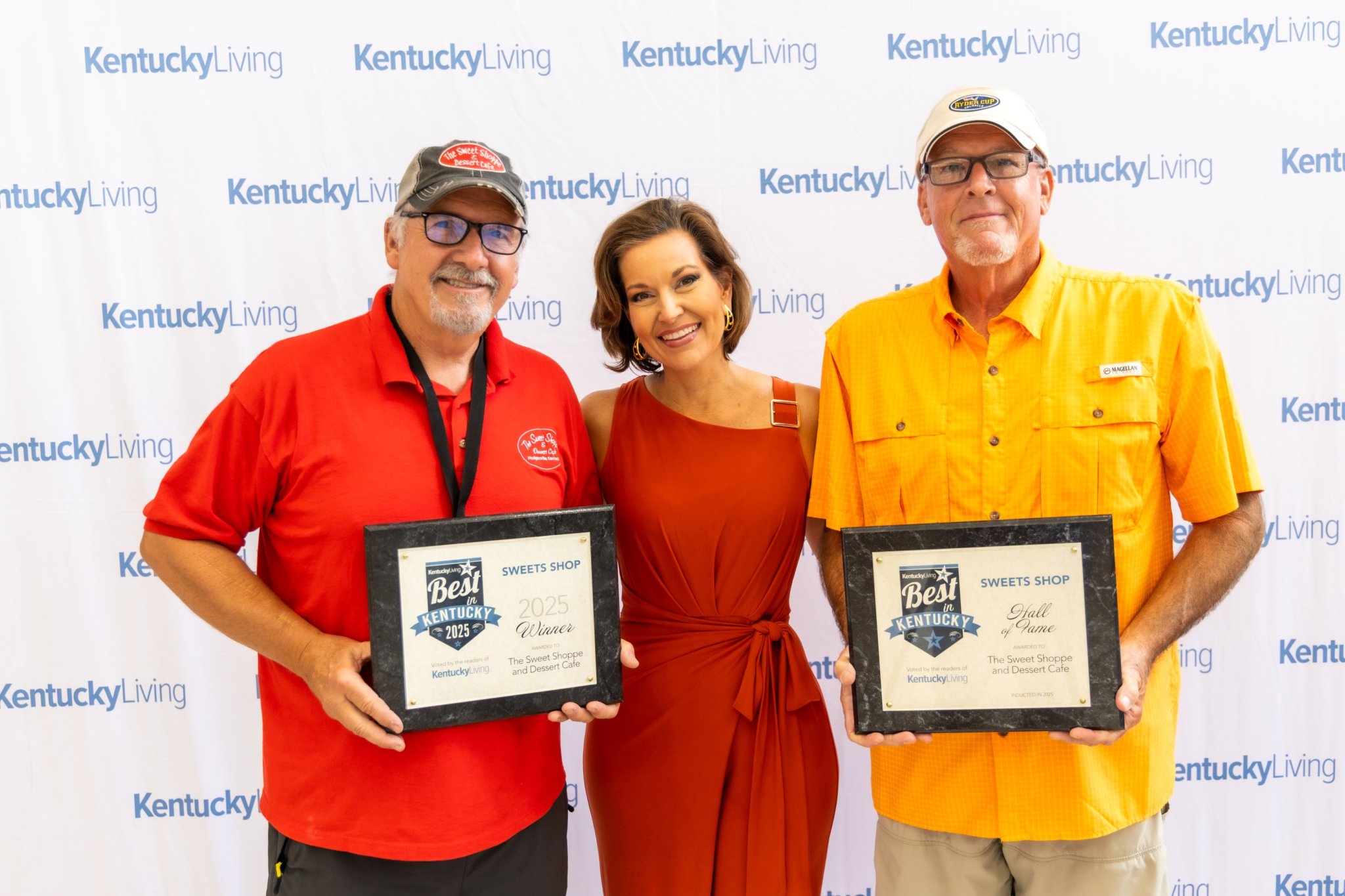 Hodgenville’s The Sweet Shoppe and Dessert Cafe accepts the Best Sweets Shop award from Heather French Henry.