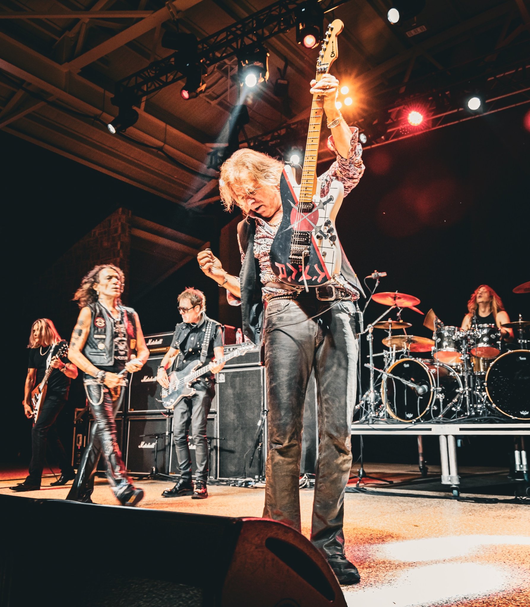 With guitars raised, Stephen Pearcy and Warren DeMartini bring the Sunset Strip sound to life in Beaver Dam. Photo: Wade Harris