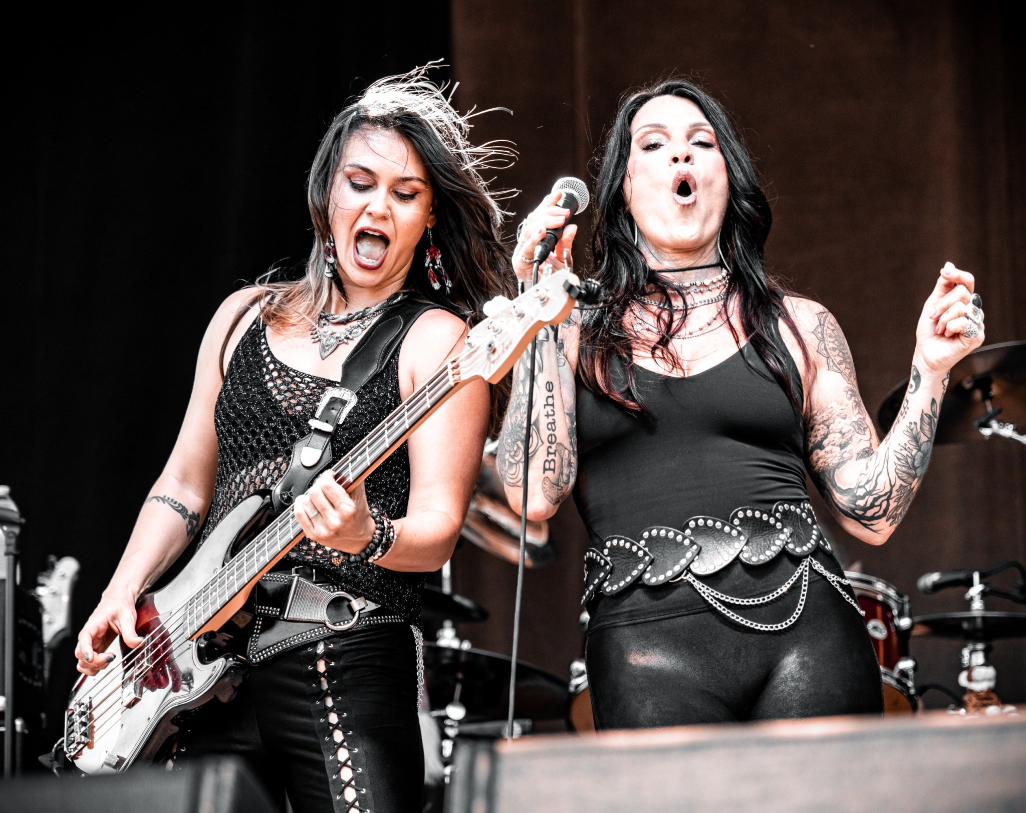 Fierce frontwoman Rosa Laricchiuta and bassist Julia Lage bring the full-force firepower of Vixen to Rock the Dam 8 at the Beaver Dam Amphitheater. Photo: Wade Harris